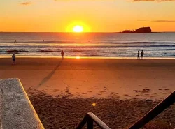 Nice sandy beach with a walkway along, easy to get to local cafes, we liked Cyllys on the Boardwalk, great coffee and breakfast. IGA supermarket and small shopping area is round the corner.